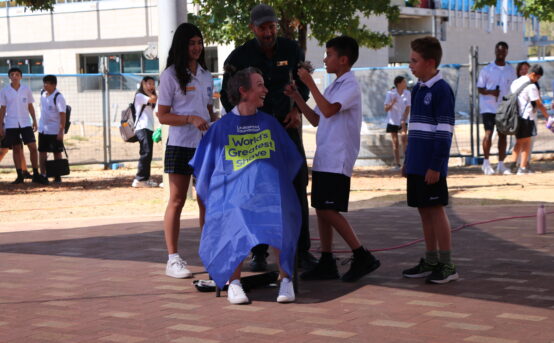 Ms Austin, Associate Principal, with the assistance of Mr Bew and students, shaved her hair for the World’s Greatest Shave fundraiser. There was also face painting (lots…