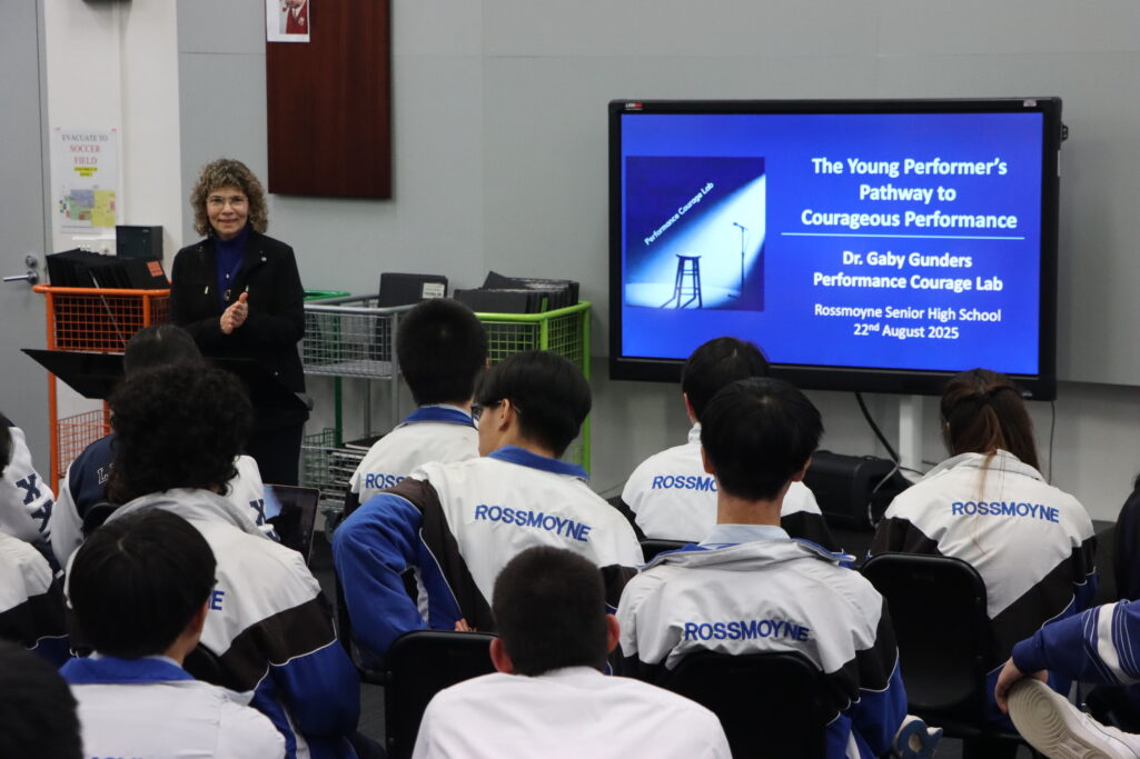 Fifty-two ATAR and prospective ATAR music students gathered to learn about the physiology and psychology of performance, along with strategies to enhance performance quality. Dr. Gunders emphasised key concepts such as agency, resilience, work ethic, and metacognition, which align with our RSHS Capabilities framework.